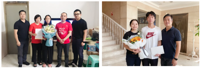 集團黨委書記鄭藝紅等領導來到員工家中,代表集團張桂陽董事長和公司向員工其及子女表示熱烈的祝賀和衷心的祝福,并送上盈眾基金會精心準備的獎學金、禮品和鮮花。同時送達的,還有公司給員工子女的一封信,信中對他們金榜題名表示熱烈祝賀,同時深情寄語,期望學子們帶著期待與憧憬,在全新跑道上,更好地照顧自己、更好地自我管理,鍛煉身體、學習知識、體驗生活、不斷成長,在追求理想的道路上實現人生的目標與價值。